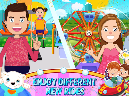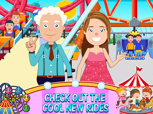 At the mini town summer theme park and pretend play fun town theme park don’t be afraid of a little water in your mobile screen. Tap at the rides and the sites and explore all the food stalls. Play the games at the arcade in the mini town summer theme park. Go on the merry go round, the big wheel or be lifted high into the sky with the summer swing ride. Try on the different clothes and accessories and gather together the mini town friends, new and old! Enjoy a unique side at the water park swings and slides. And remember to have fun with an amusement park ride!