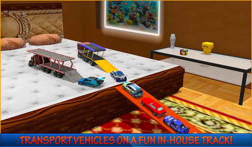 This transporter simulator is a special treat for the fans of transport car game and remote control cars. Transport mini vehicles in mini trucks over mini tracks laid all over your house. Control all mini cars with amazing RC car controls. Perform stunts with mini cars and collect points by passing through and jumping through obstacles. With amazing smooth controls you can drift, wheel and jump through hurdles and enjoy this amazing new car transport simulator.