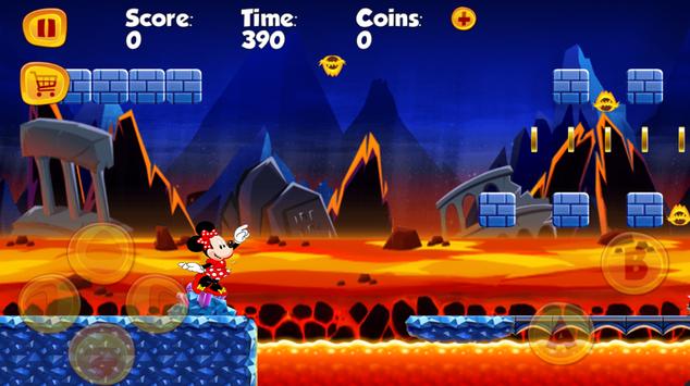 one world to another and Jungle to get all the coins you can and be careful not to fall because if minnie the mouse do