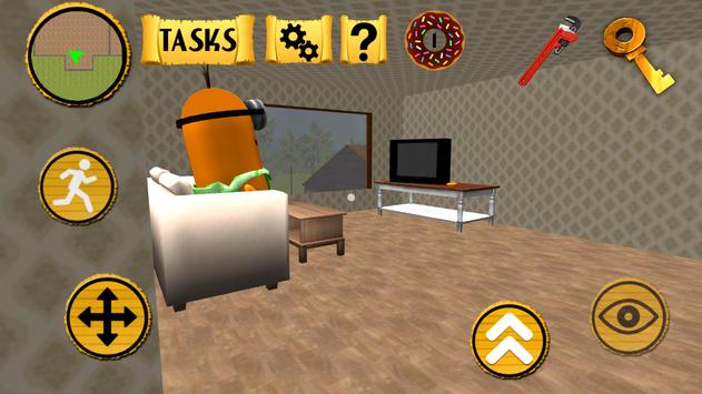 • Amazing Gameplay! Eat donuts to recover your stamina, run from the minion neighbor, hide under beds from him!