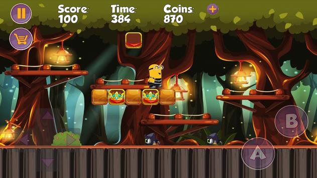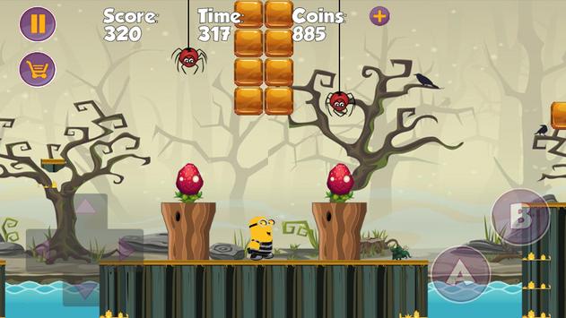 Help minion collect the coins and find the hidden blocks in all the parts of the four fantastic worlds. Walk carefully in the wild forest, magic monsters are watching you waiting for the right moment to kill you. Poisonous creatures are hiding in the thorn land, avoid the deadly obstacles and don’t let them stop your adventure. Witches will be flying over your head in the dead city, hide under the bricks and look for the secret sea passages. Run as fast as you can and Jump in the haunted waterfall, avoid the fireballs and kill the monsters to get your hero to the final castle. You will fight a different boss every time you finish exploring a world. We hid boosting items to help you fight and survive. Use the “Minio Grow” to grow up, take also the shield to complete your hero package and become stronger then defeat all the blazing monsters in the different areas.