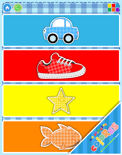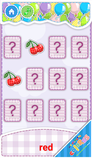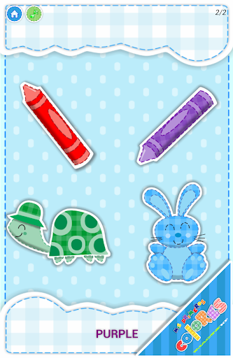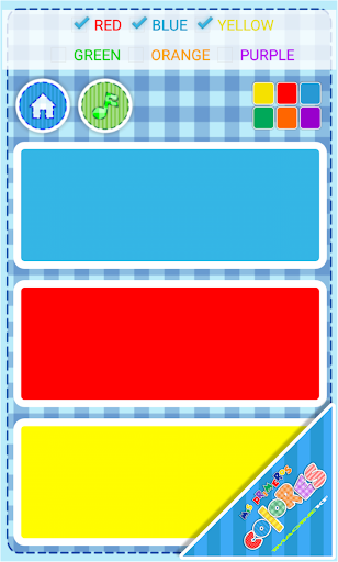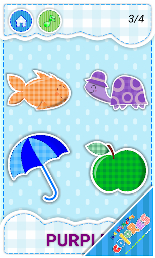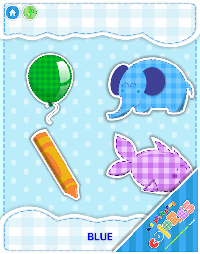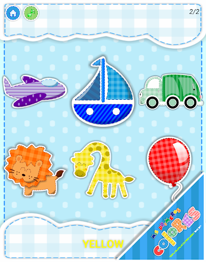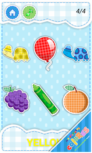 3. Identify correct color as instructed between several images shown. The kids will choose between different images and selecting the correct one will let them continue practicing more colors. Will listen to pronunciation of the current color by touching the color name at the bottom.
