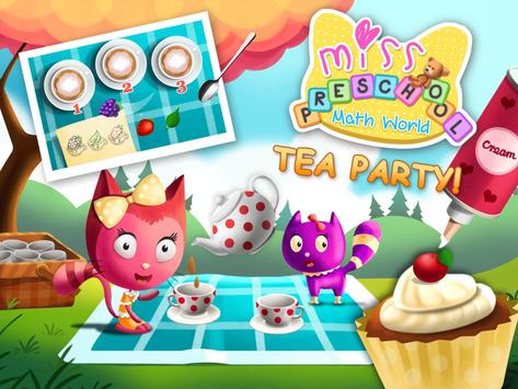 · Play tea party with Miss Preschool pets and decorate cupcakes. Learn to set the table, share with others, arrange the fruits in the right order and count to 3!