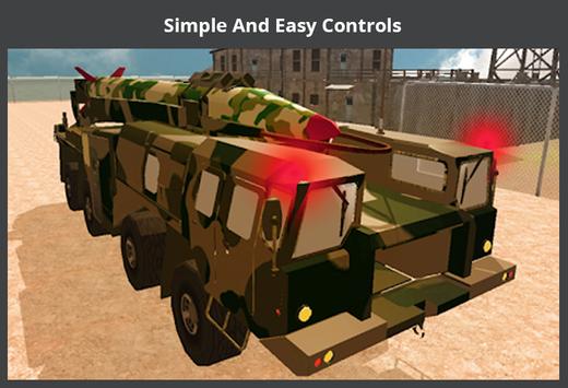 Be a bravo trucker with your army truck to perform efficiently in this Missile Attack Launcher Simulator game. Play all levels of your missile launcher to destroy the enemies. Get ready with your own army truck to show extreme driving skills of a truck like popular truck games and army games. Realistic environment of this Real Missile Launcher Truck Drive game will enhance the excitement level to play like a famous truck games. Perform well to become a hero of all truck drivers. So why are you waiting for? Enjoy and download this Missile Launcher
