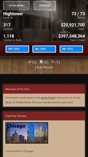 In Mobile Mafia, you are in control. Money has been stolen, guns have been shot, people have been killed and gangs have been formed. Join the madness in this text-based game. It’s all about strategy, it’s all about courage - it’s all about stealing. Nothing will ever be the same once you have joined the Mobile Mafia.