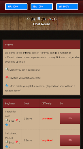 Be part of the Mafia anywhere you go, organize crimes on a train, travel between countries on your sofa - be a powerful leader from the palm of your hand. Experience mobile gaming like you’ve never seen before. In this addictive online game, you will be in control of your criminal life. Making money, gaining crystals and keeping up your will and energy!