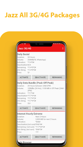 All Mobile package Pakistan 2019 contain all network packages of Pakistan. User of application can Activate, Deactivate, checking remaining/status package present In application.