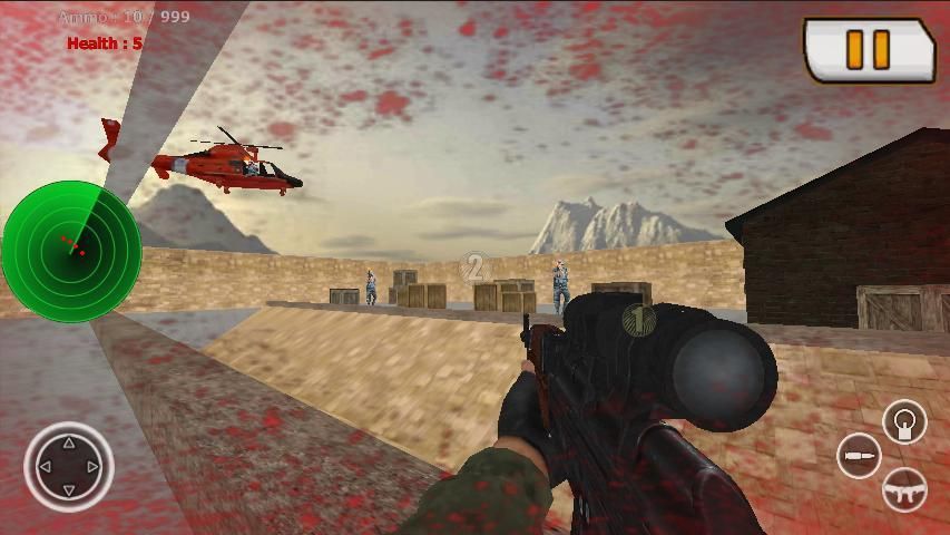 Modern Army Commando War consists of 10 each levels. Each level consists of different drastic shooters and one man army helicopter. Play the game have a fight with enemies with different weapons but aware of suddenly rising attack of army helicopter.