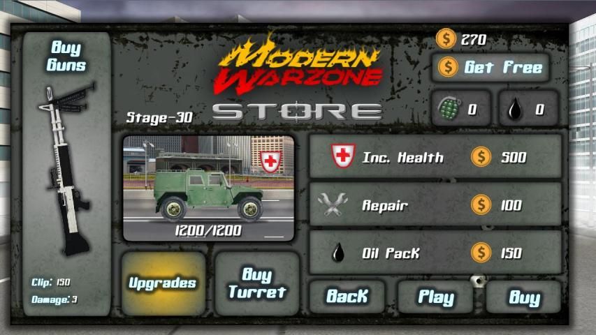 Repair your car, buy grenades and oil to survive even longer and take care with civilian vehicles, you will lose money by destroying one of them.