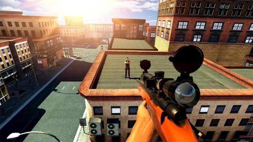 Shoot to kill the targets that might be hidden in the buildings or be positioned on top of it.