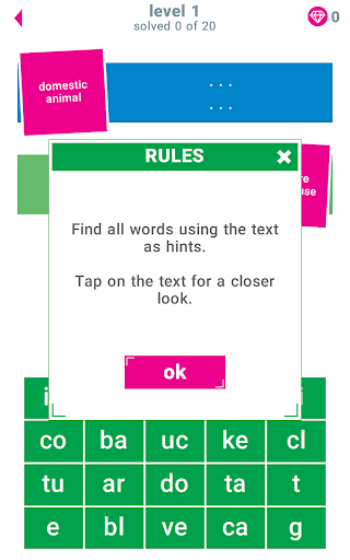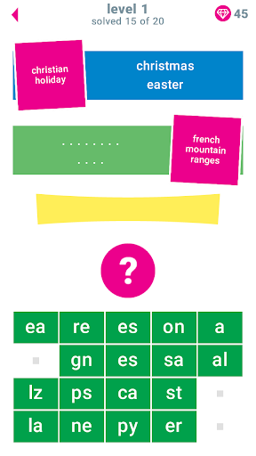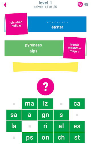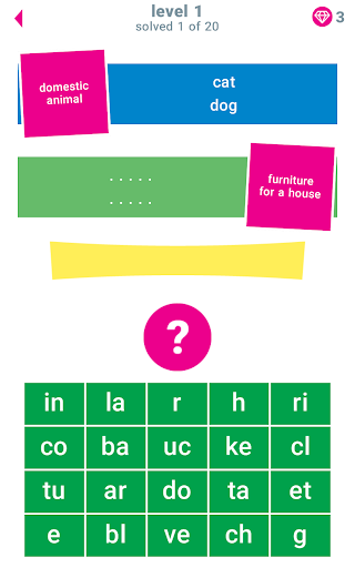 Each level contains clues and crossword-like questions. Try to find these words and solve all levels! Some answers are straightforward, some are quite tricky. Enjoy this addictive new brainteaser!