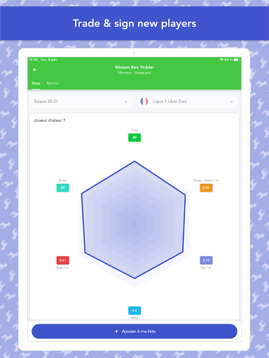 Forget about boring points and never-ending rankings. Inside a private league, you’ll face a friend every week-end. You'll win (for instance 2-1) if your players score or have a good mark (given by our algorithm based on 80 different statistics).