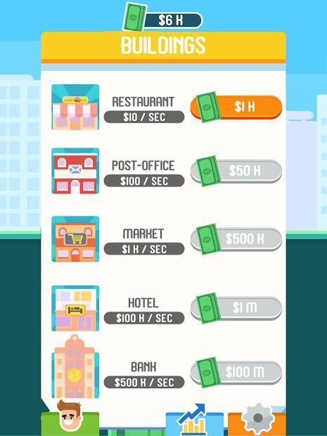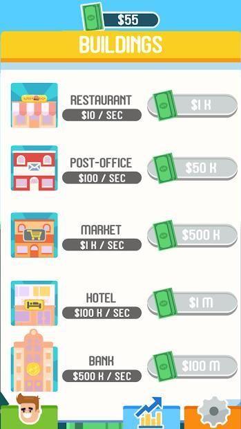 • Tap whenever, wherever you want, and take a break. This idle clicker lets you profit from your businesses without actually being there!