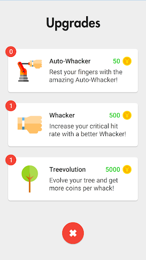 Upgrade your Whacker using the free cash from the Money Tree to more critical Whackers such as a fish, a baseball bat, a sword, an axe or even a bomb!