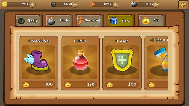 Super Monkey Adventure-the monkey has super power with many skills and weapons such as: magic stick, boomerang, hard rocks, bombs…