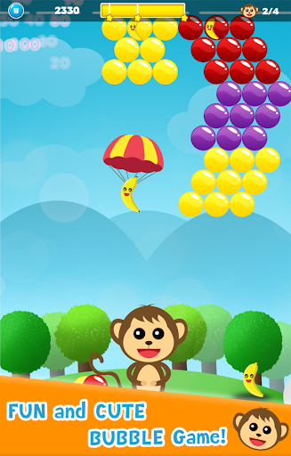 Show the rest of the gaming community what a bubble shooting game pro you are! Just aim, tilt then release or tap then the physical-based bubbles will pop out and fly you through many puzzles of the bananas worlds of bubble matches. Shot and burst the bubbles, help the little monkey claim back the land, win the missions, rescue the little souls, defeat the devils using the many powerful banana bubbles.