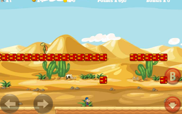 Monkey World is an amazing new retro gaming experience! 18 levels of awesome adventure game play await you in this jungle! Run through the world of clouds, pipes, and turtles and grab all of the bonuses and points you can! There are extra lives hidden in each and every level and world that you courageously conquer! Your mission is to make it through each level with at least one life! This expertly created retro gaming style adventure has been optimized with cool graphics and excellent gaming experience in mind.