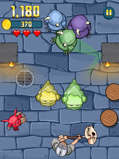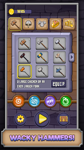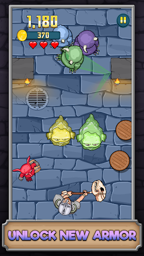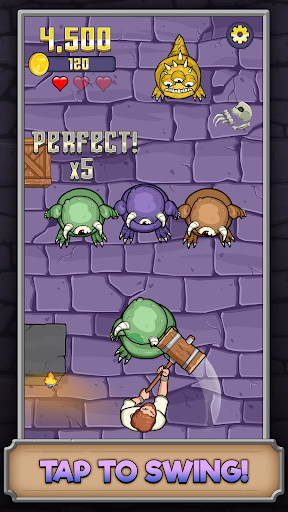 Equip your armor, pick up your weapon, and enter the dungeon! Simple one touch gameplay empowers you to swing your hammer and smash monsters, earning coins and loot along the way. Knock enemies into each other or bounce them off objects for chain kills. Unlock new powerups to venture deeper into the dungeon and reach new scores. Open treasure chests when your run is over and get more items to dungeon crawl in style!