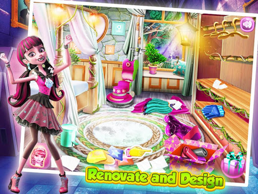 Moving to a new house means toys and dolls, and more decoration! It is great to create new castle places! Here you can decorate many high rooms as you like. Show us your scary cool ghouls the best decoration style and clean the dust!