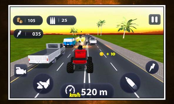 For speed driving and wonderful fun Monster Highway Traffic Crash 3D is the most popular game. Buckle up your driving experience with this game. Run the game and enter into the world of race. You can select your Monster truck by expending your coins collected. You have to two modes of game one is single way traffic mode and other is double way traffic mode. Now have a fun!. Crush the obstacle vehicles coming into your way. In a way you can collect coins guns and also missiles which you can use for hitting the vehicles truck coming into your way.