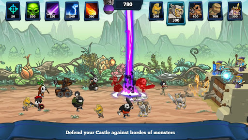 You and your fierce warriors are the last defense against the rising forces of evil. Make your stand and defend your castle against countless hordes of monsters. Strategically summon fearless warriors on the battlefield to engage the monsters in combat. Invoke powerful magic spells to turn the tide of battle in your favor. After each battle, use your hard earned gold to upgrade your warriors and your spells.