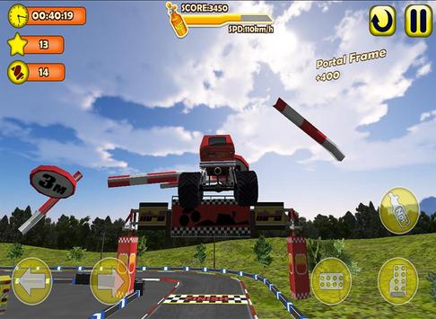 The stunt are not some simple stunts you see in most mobile games. These stunt make you flip over and turn in the air. On the ground you can drive on 2 wheels to race between obstacles. It is a very tricky stunt but once you master it you will become a epic monster truck driver!
