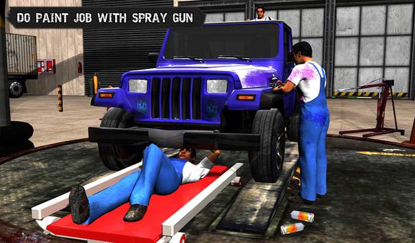 Improve your ultimate experience of repairing and building 4-8 wheeler trucks. Work in modern truck repair workshop for fixing huge offroad vehicles like a real automobile technician. Fix grand trailer, army jeep and centipede trucks as engineer in auto mechanic workshop. Grab your toolkit and take charge of garage workshop to become custom truck builder and ultimate repairman. Run bus mechanic workshop and fix faulty machines, replace tyres with stepney, install headlights or change oil and do exciting paint job. Use advanced tools to perform auto repair in service station of workshop simulator. Start repairing like tuning and fixing of broken parts, tighten up loose nuts & bolts with screwdriver. Do complete autobus service and repairs to fix problems in grand truck, jeep and centipede trucks. Use spray paint to color rusty parts of wrecked 4 wheeler for a brand new look. Enjoy distinctive and unseen gameplay in classic mechanic simulator game. Paste trendy vinyl stickers to modify 4x4 jeep and russian truck just like luxury sports car.