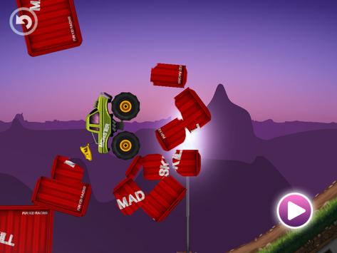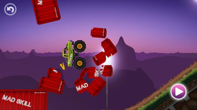 Monster Truck Racing game for Kids! Simple to play and yet fun to enjoy for everyone! Choose your ride and guide it to the finish line! Control your Monster Truck with just one finger and see how it flips, jumps and rolls on it's way. This is so simple that you can watch TV and play this game crushing some old cars at the same time!