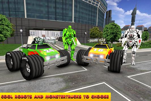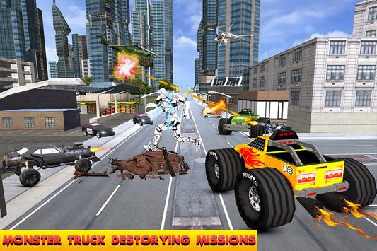 If you are a fan of robot games? Transform your monster truck robot to demolish enemies and save humanity.If you an expert driver of monster truck games then get ready to take charge in this Monster Truck Robot Transform game.Thrilling missions ,Enter the Monster Truck Arena and drive the biggest, meanest, most exciting Monster Trucks & Cars. Use ramps as an excuse for amazing jumps, drive your Monster Truck across cars that look like toys compared to you.Energetic robot battles will unlimited power! Take part in a real mortal battles against outer world enemies without any limits!