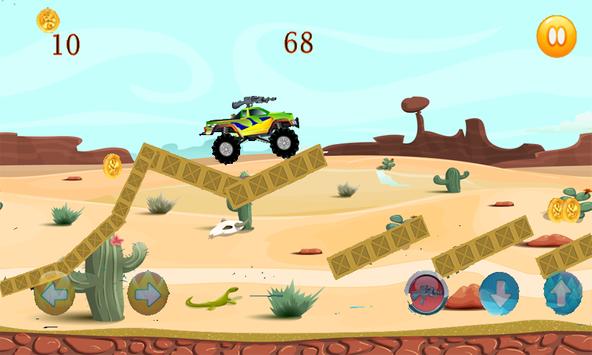 Simple controls to drive the monster trucks along the course and shoot the obstacles to continue driving your way . the simulator truck never flips ensuring you always gets to the finish line!