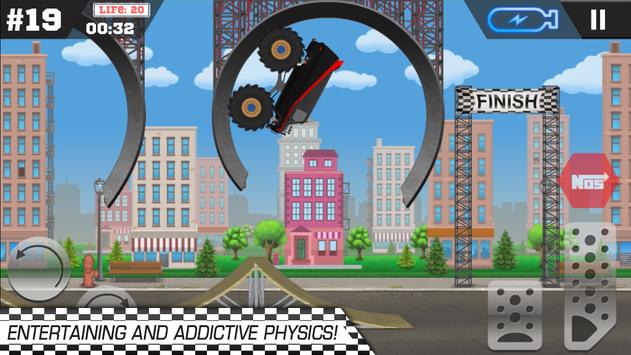 Play havoc the city with most beautiful monster trucks you can ever seen. 5 different cities and hard tens of levels are calling you. Drive over school busses, barrels, wheel hills and car crowds by your monster truck. Use ramps to fly over big pits and reach the finish point fastest with less damage. Use your nitro smartly and carefully to jump heavier over the ramps. Improve your vehicle by earning more money.