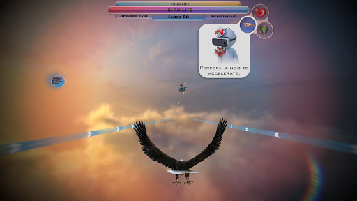 Control your flight with body tilts and flapping your wings to catch as much precious points as you can. Use acceleration, shields and other interactive elements.