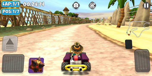 VROOOM! Your favorite feathered racer is back, bringing both old and new friends with him in this action-packed Arcade game as you race your way through 8 exhilarating 3D worlds with explosive excitement around every corner. Collect weapons as you race around the tracks and strategically fire them to drive your opponents off the road. Moorhuhn Kart is a great time for all ages!
