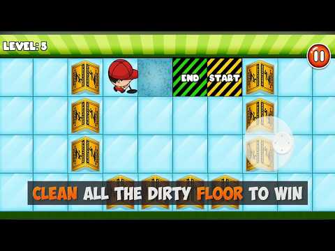 Game rule: mop all the floor, but do not touch the same tile twice. The tile you’ve cleaned will look brighter than the rest. Start from Start point to the End point. Once you touch the bright white tile, you’re dead and has to replay that level. To play: direct the hero (up, down, right, or level) from Start to End