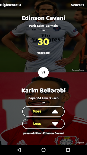 Here, you are given age of two football players. First one is shown while the second one is hidden. You need to guess whether the second one is older or younger than the first player.