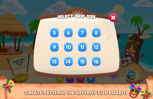 Now you can draw your own patterns with 12 different size of grid. You can also save images to your device and share with your friends. You can redraw your save patterns from gallery and enjoy the game.