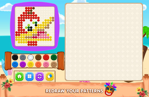 The goal of this game is to copy the selected level reference image by selecting the colorful perler beads from the palette and placed it on the right side blank board. It is easy and fun game.