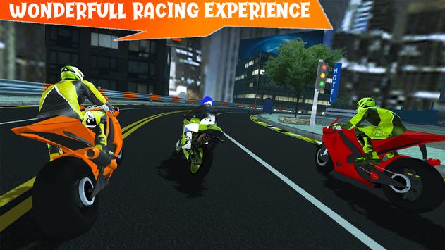 Real racing motorcycles bike will perform on bumpy and highway racing tracks. The driver of Extreme stunts adventure bike game will compete in the shadow of mountain and city area. Furious riding skill would be test in this Real physics driving game. Every possible speed of limit is necessary for extreme traffic racer.
