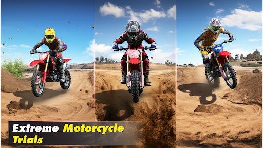 Amazing motocross game track moto bike physics added. Perform dirt bike trial games and motocross trial stunts in bike challenging race tracks level games and road rush and flaunt your driving skills. Be ready for freestyle bike racing, road rashes on your way. This extreme motorcycle game of mot ride is certainly fun to play!
