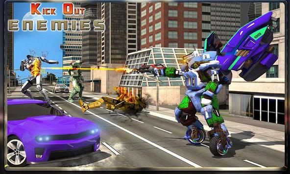 Are you ready for the supreme of bike shooting games, the bike robot simulator with an option to shoot the enemy robots as a bike shooter or convert it into bike robot to flame out the enemies missed in any other moto bike game. This is sensational thriller motorcycle equipped with modern weapons, more than a police bike chase, to chase and shoot the other robots threat to the city. Fasten your seat belt for this magnetic mix of moto robot games and motorbike games. Just play