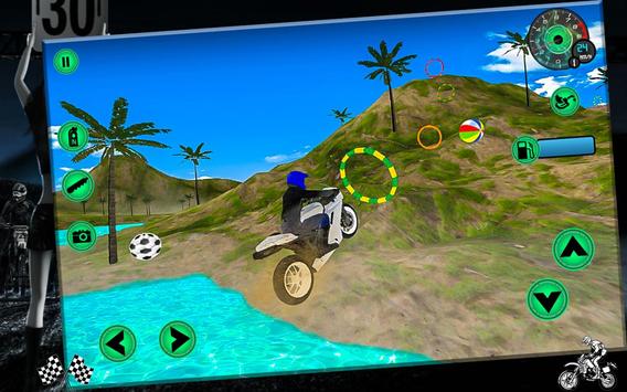 Join Biker Boys as Jump Skills Motocross bike Simulator on Big Ramp or Beach in Island Area. Turn the key, kick to Start your motorbike, Pull the throttle, Dirt Ride on stunt ramps, ride fast, jump to earn points and perform cargo job on big ramps.
