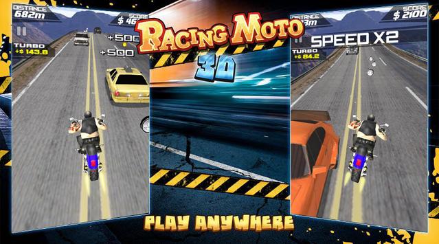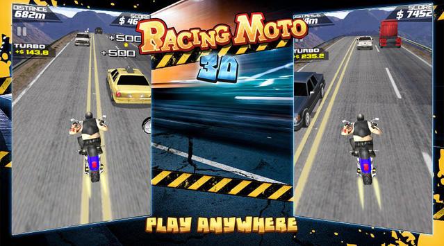 Top MOTO Racing 3D is an endless MOTO racing game. Accelerate your motorcycle at high speed on highways in heavy traffic, get cash, buy new bikes and be the king of the streets !!!