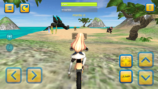 Welcome to Motorbike Girls Jumping Mission - amazing motorcycle shooting and driving game with anime style girls.