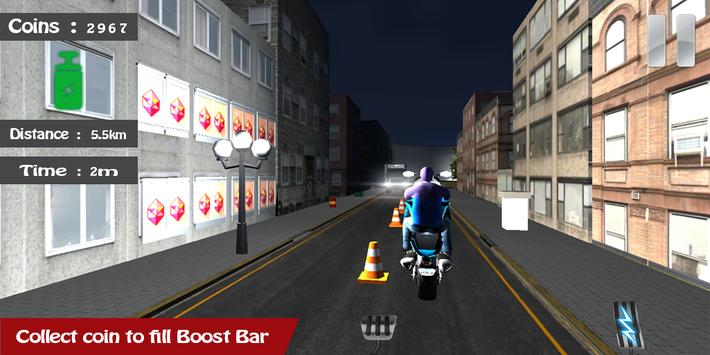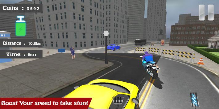 we bring two modes for you to ride city and highway. As more coins you will collect, as earlier your boost level will filled up. Tilt makes you able to control your direction. you are also able to use two more button break and boost.