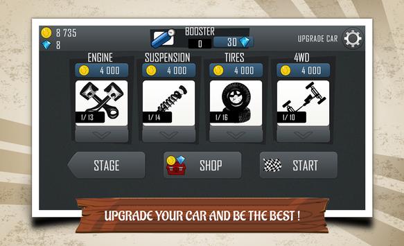 Paul is a outstanding and aspiring ultimate young mountain racing driver.He will start an entertaining driving journey.Choose a car to face the unique hill climbing environments.Collect coins to upgrade your car and reach greater distance. Conquer the highest hill!