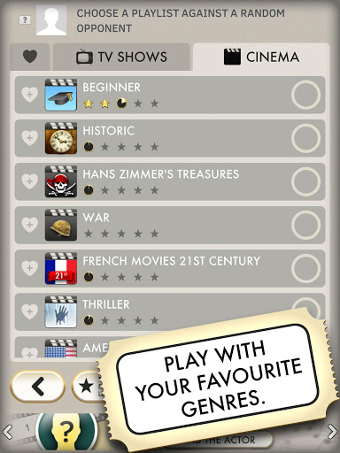 A game enabling you toexperience all the emotions of cinema via thousands of soundtrack and song clips.