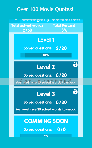 The Movie Quote Quiz is a movie trivia/quiz game that puts all those quotes you know in love in front of you in a fun game to guess which movie they come from. With over 120 quotes and counting from all genres and decades, it is guaranteed to give you hours of fun and entertainment. The Movie Quote Quiz will have you quoting movies all day! MQQ is Constantly updating and adding more levels to keep it fun and exciting.
