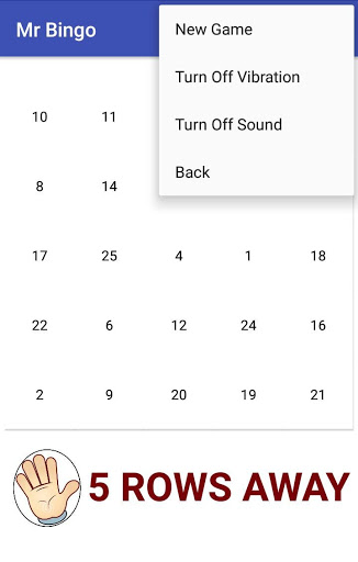 Mr Bingo. is a multiplayer fun game of skill and chance. The objective of the game is to complete 5 combinations of rows in any way , whether vertically, horizontally or diagonally.