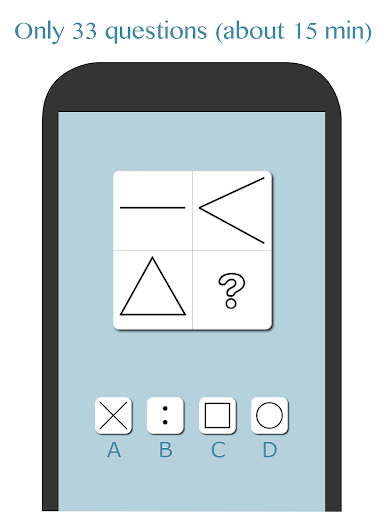 Please free some 20 minutes for the test because you won’t be able to take a pause once you’ve started. You can answer by double tapping one of the choices or by tapping one choice and then pressing the “next” button.