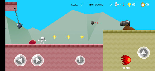Mr Jumper will have to jump, shoot and sometimes the best option is to run away from enemies and obstacles.